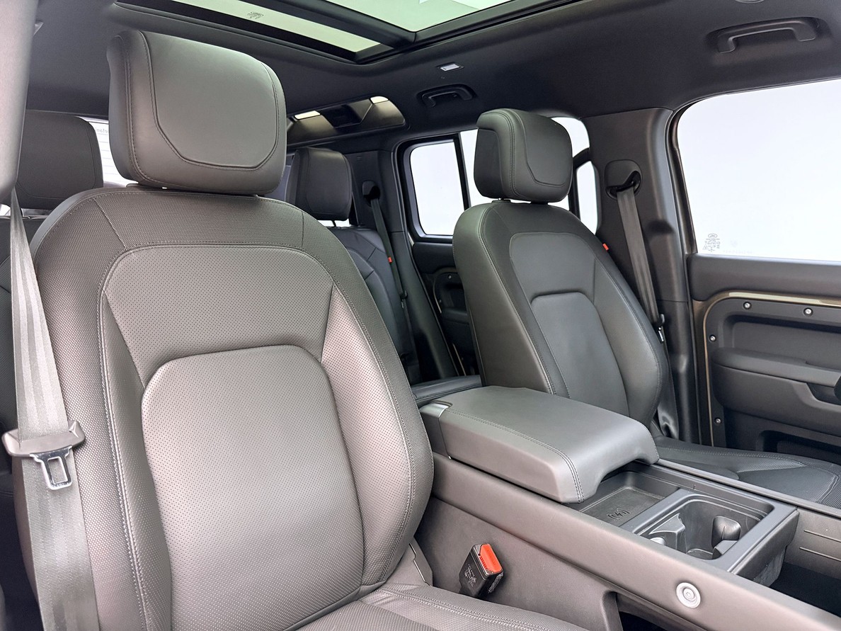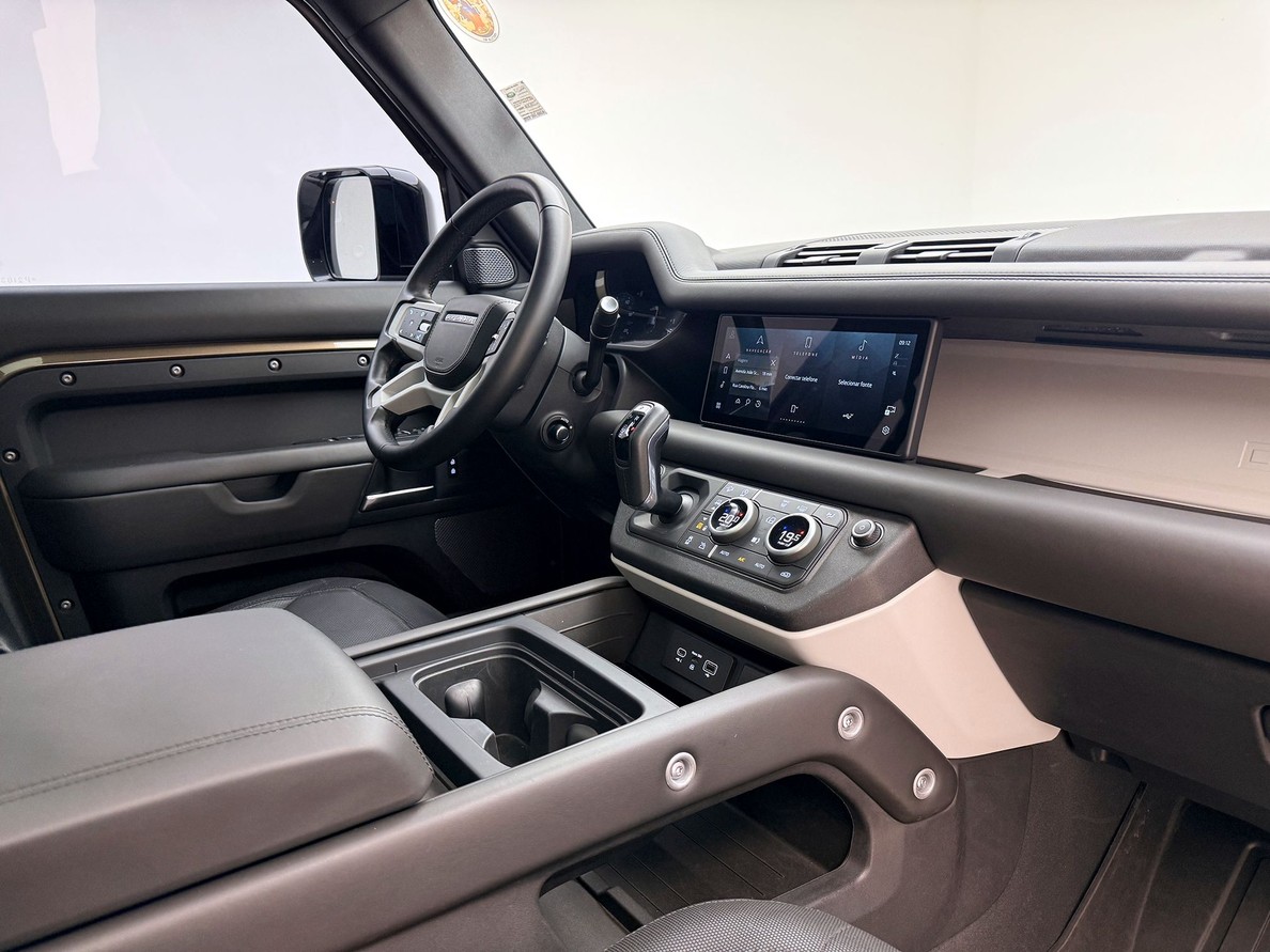 LAND ROVER DEFENDER Rodas aro 20?, Porta malas com capacidade para 464 litros, Tela Interativa do Motorista, CarPlay, Sensores de estacionamento, Sistema de partida sem chave Keyless, Bancos em couro com interno preto, Farol em led, Teto solar elétrico Câmera de ré, Suspensão ativa regulável.
