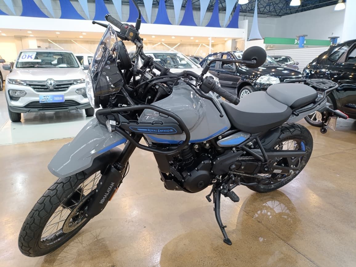 A Royal Enfield Himalayan 450 é uma moto de aventura equipada com o novo motor Sherpa 450, que entrega 40 cv de potência a 8.000 rpm e 4 kgf.m de torque a 5.500 rpm, com refrigeração líquida, DOHC e 4 válvulas. Possui chassi em aço de espinha dupla, suspensão dianteira invertida de 43 mm e traseira mono-shock. O painel é um TFT redondo de 4 polegadas com navegação e conectividade, e o sistema Ride-by-Wire oferece quatro modos de condução.
