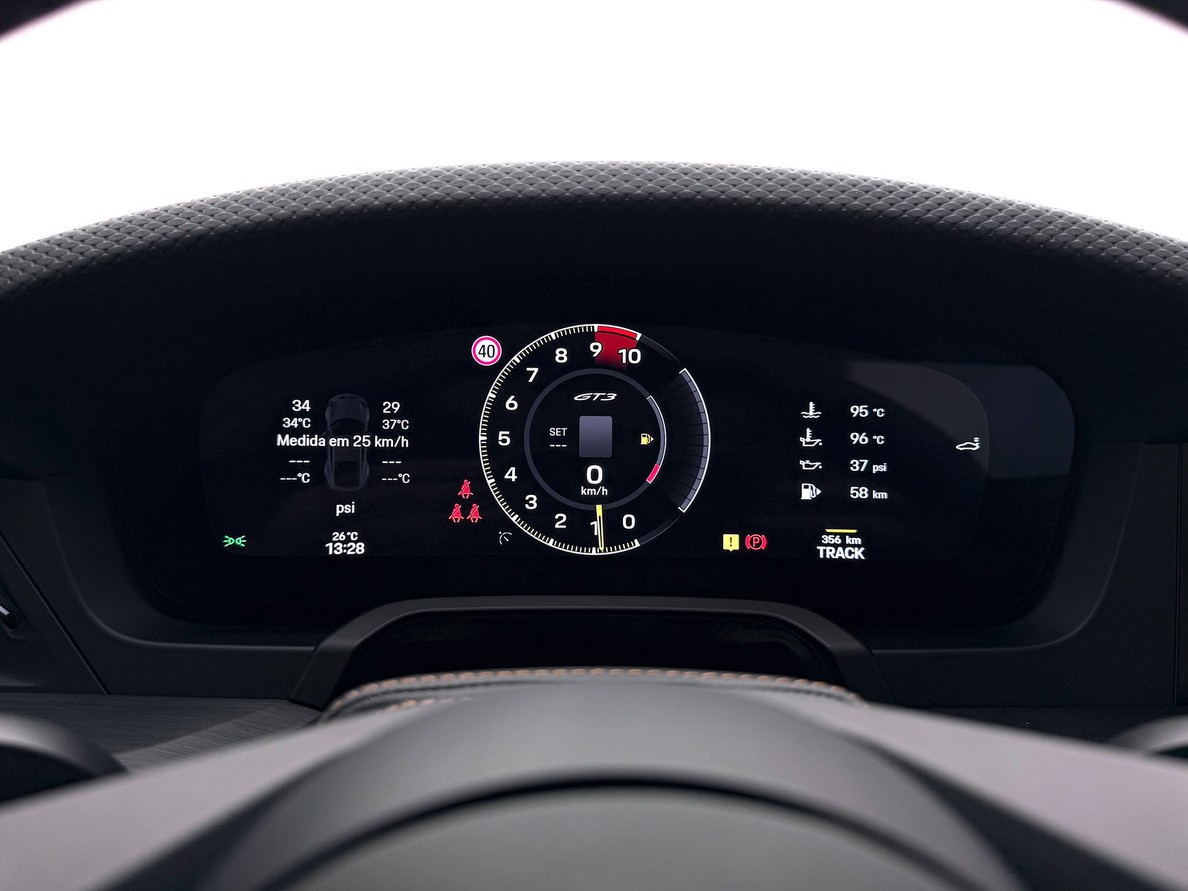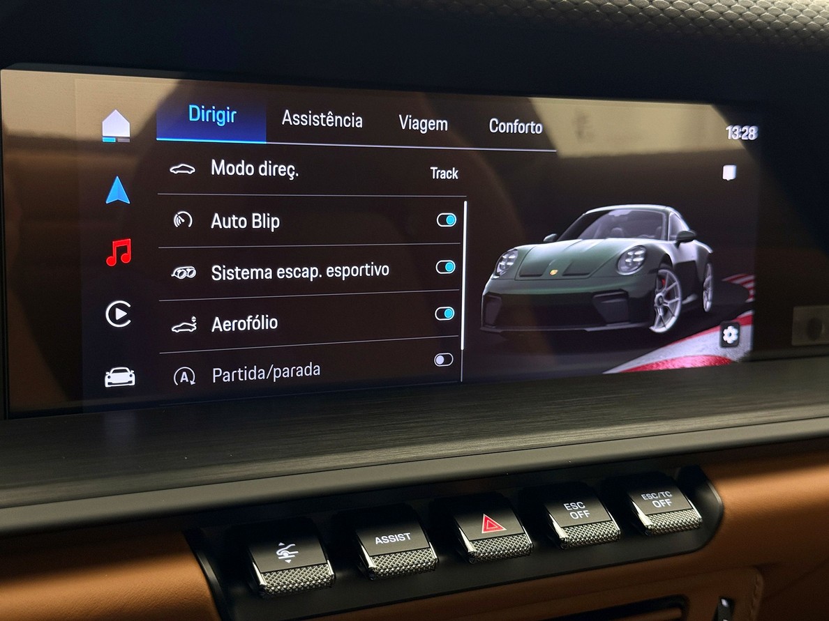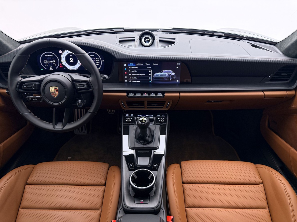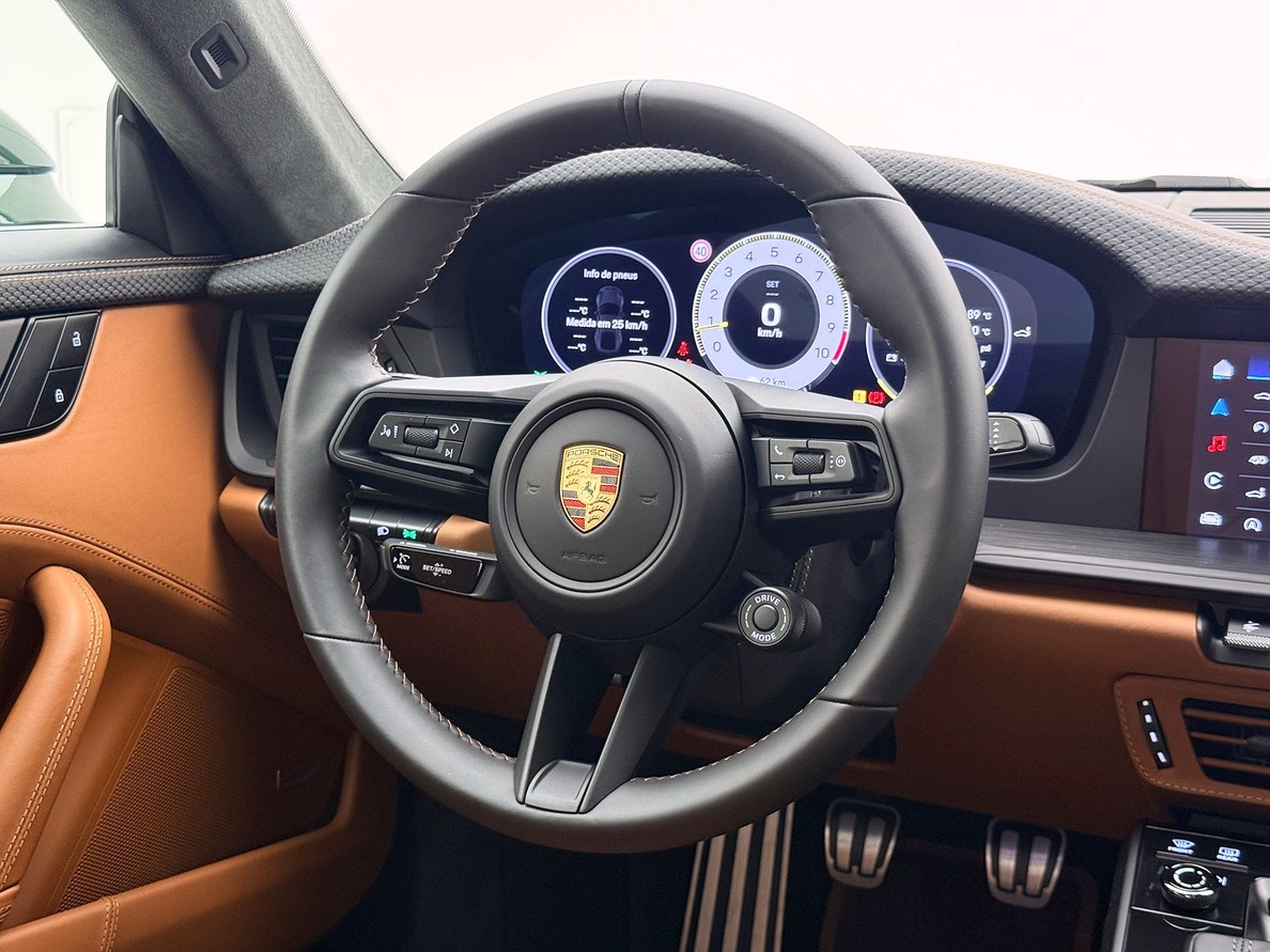 PORSCHE 911 2026 Rodas Leves forjadas aro 20/21", Freios em Cerâmica com pinças em preto brilhante, Bancos esportivos 18 vias elétricos com aquecimento, Pacote estendido de couro, interior exclusive, Interior marrom, Sistema de som BOSE, Lift System, Faróis em led escurecido HD-Matrix Mostradores na cor branca, Forro do teto em Alcântara, Pedais de apoio em alumínio, Escapamento esportivo, Ionizador