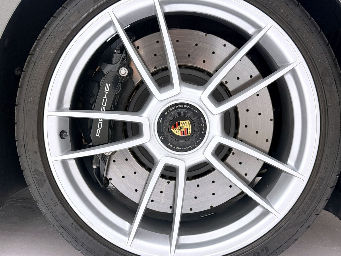 PORSCHE 911 2022 Rodas aro 21", Eixo traseiro direcional, Volante Sport GT em couro, Sistema de elevação do eixo dianteiro, Tampa do combustível com acabamento em aluminio, Bancos em couro Club verde agave, Pacote interior em carbono fosco, Soleiras da porta iluminada em carbono fosco, Lanternas traseiras exclusive, Cintos de segurança em vermelho bordeaux, Cronometro em verde lizard,, ACC, Sistema de som BOSE, Carplay
