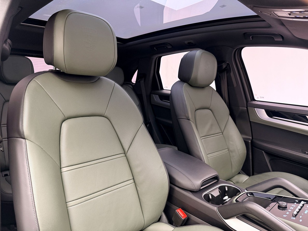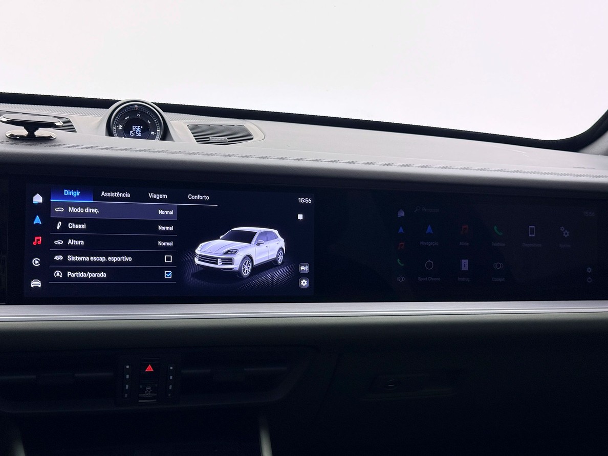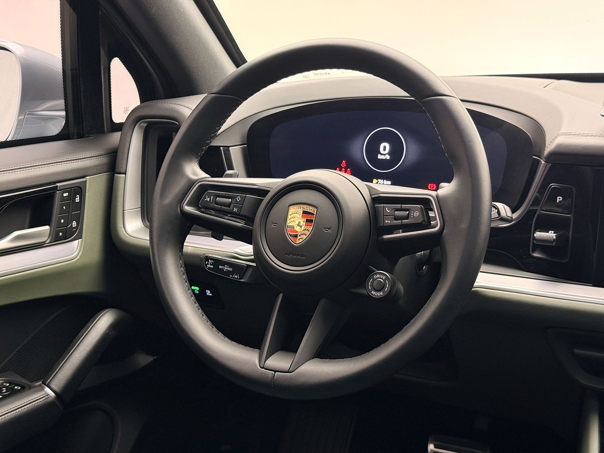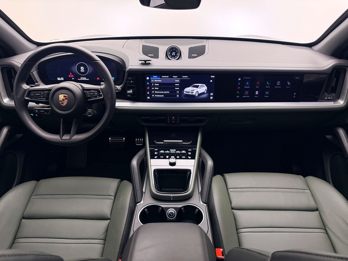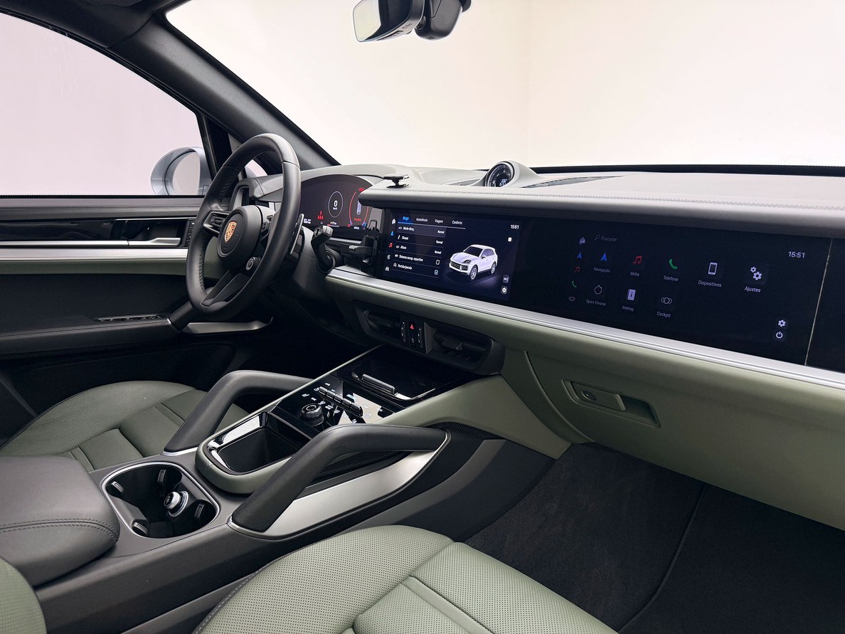 PORSCHE CAYENNE 2024 Rodas aro 21", Bancos elétricos com aquecimento e resfriamento, Interior em couro bicolor liso preto/ verde noite, Teto solar panorâmico, Som BOSE, Câmera de ré 360º, Suspensão Pneumática, Escapamento esportivo, Pacote Sport Chrono, Volante multifuncional com shift paddles e aquecimento, Fechamento suave das portas
