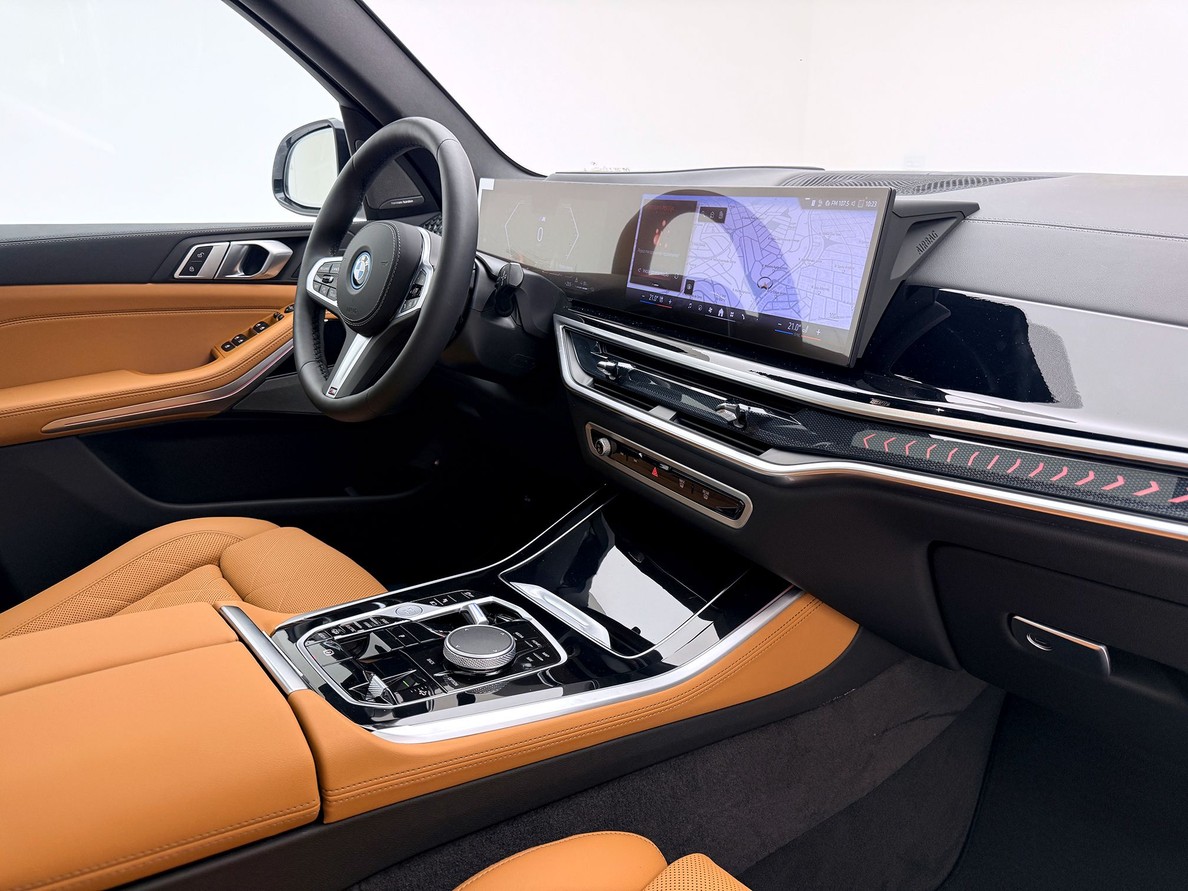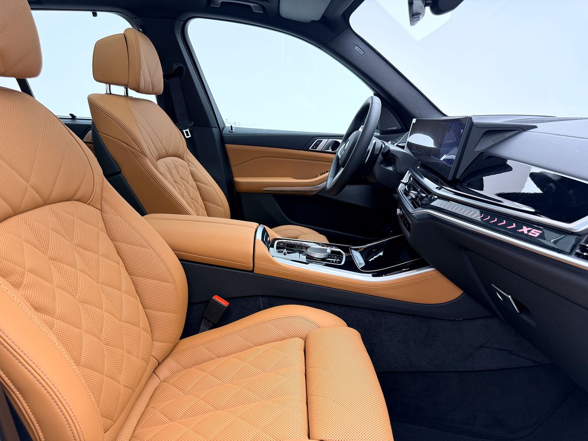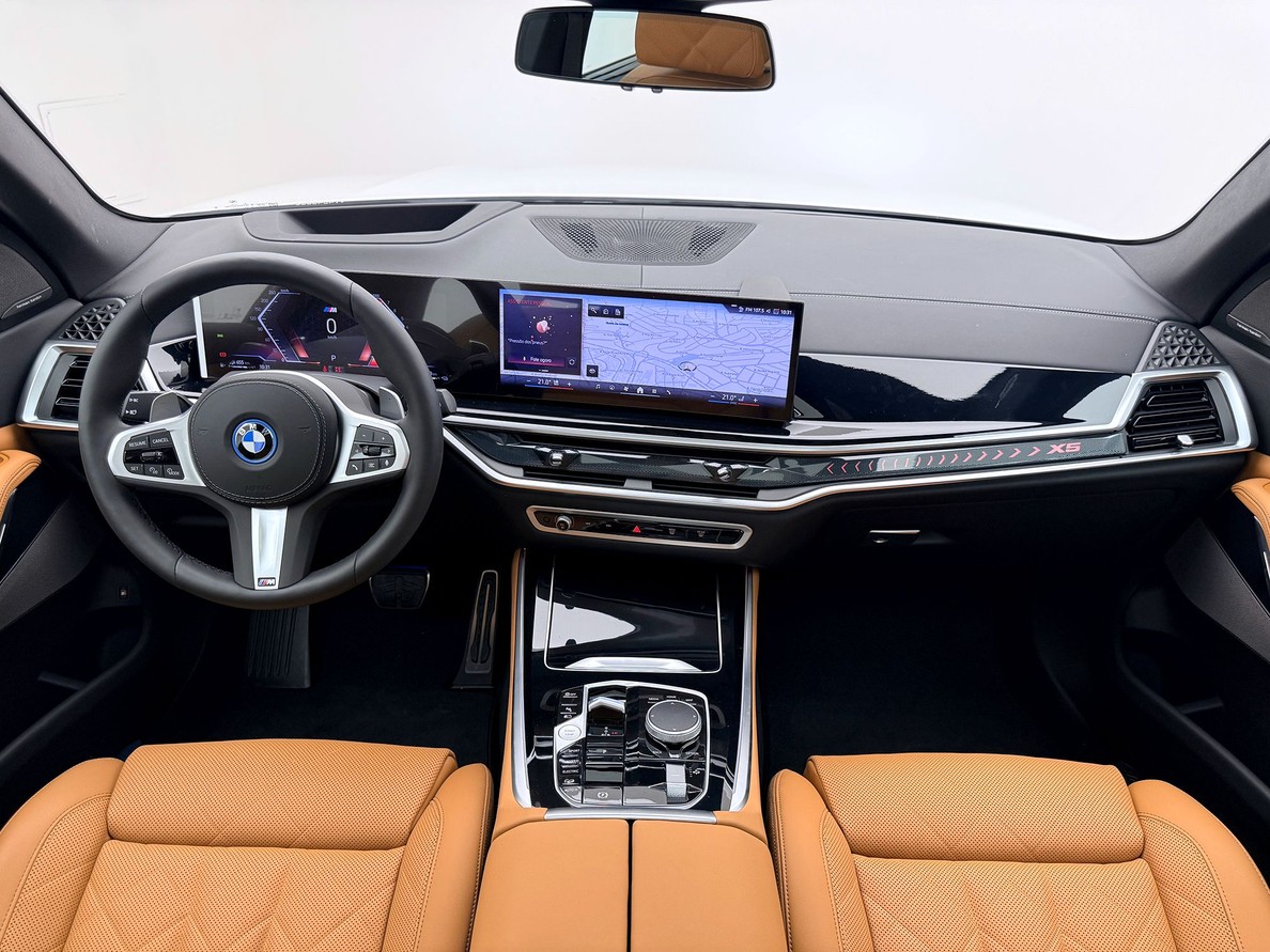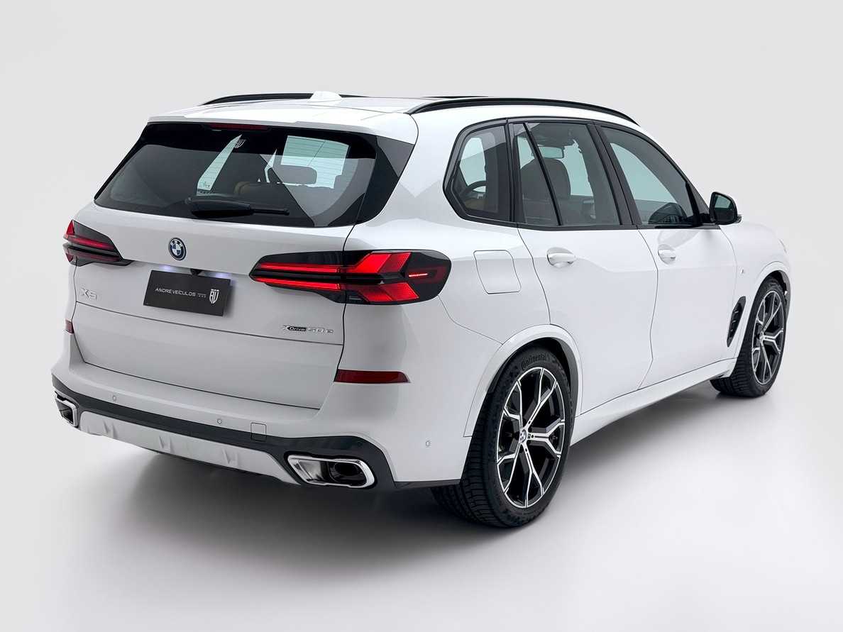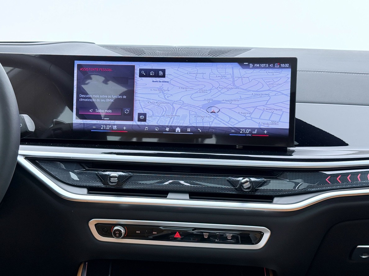 BMW X5 2026 Rodas aro 21", Bancos em couro com interno marrom, Aquecimento e resfriamento dos bancos dianteiros, Câmera de ré 360º , Carplay , Sistema de som Harman Kardon, Pacote de Conectividade Completo, Suspensão pneumática , Teto Solar Panorâmico, Head-Up Display, Alerta de mudança de faixa, Frenagem automática de emergência , ACC , Direção semi autônoma.